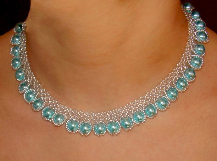 Необычное колье состоит из бисера и крупных бусин.