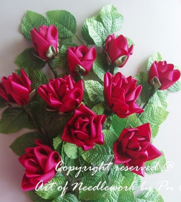 Пышная прекрасная розочка из атласных лент