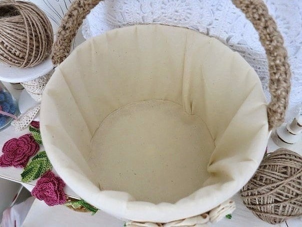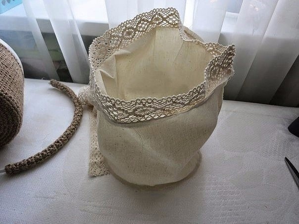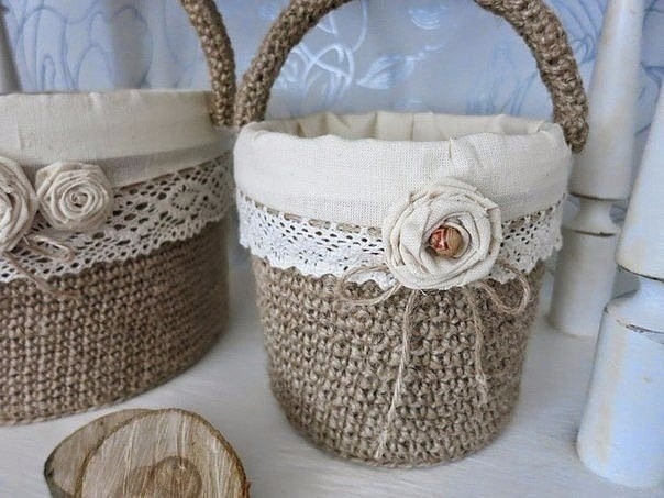 Джутовые корзины можно создавать на основе обычных пластиковых ведер.
