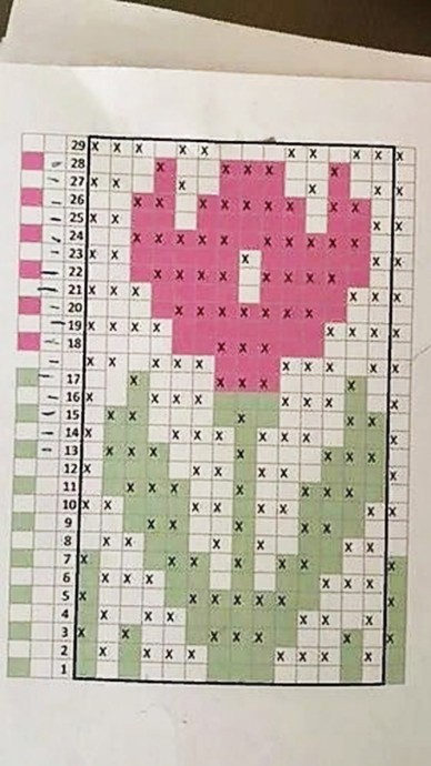 Жаккардовый узор "Тюльпан" можно выполнять во всех цветах, какие только вы захотите просочетать.
