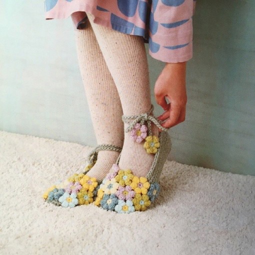 Тапочки крючкомОригинальные уютные следки крючком от дизайнера Dora Ohrenstein.Описание процесса вязания тапочек крючкомВерх стопы (связать 2 детали):1-й ряд (лиц. сторона): 7 в/п....