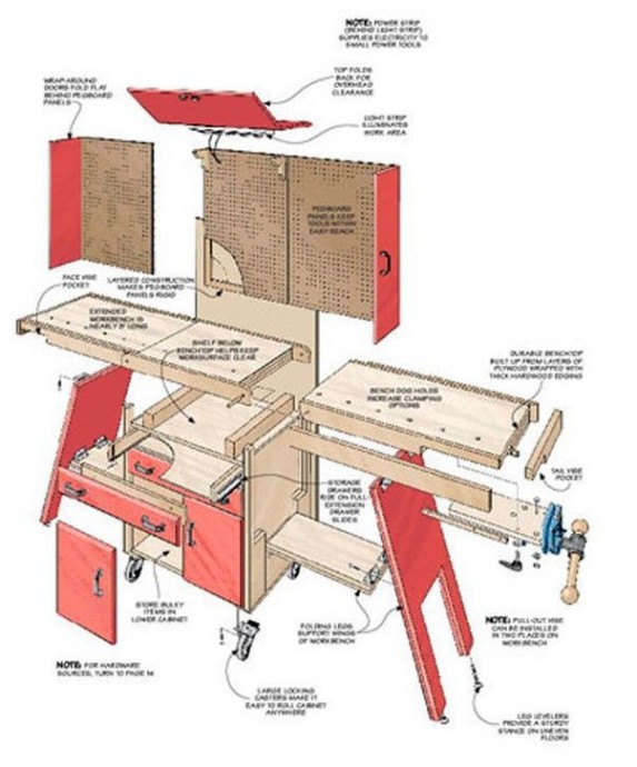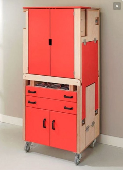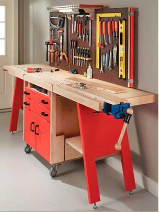 Такой шкаф-стол можно сделать не только для таких инструментов, как на картинке. но и для любых приспособлений для рукоделия тоже.