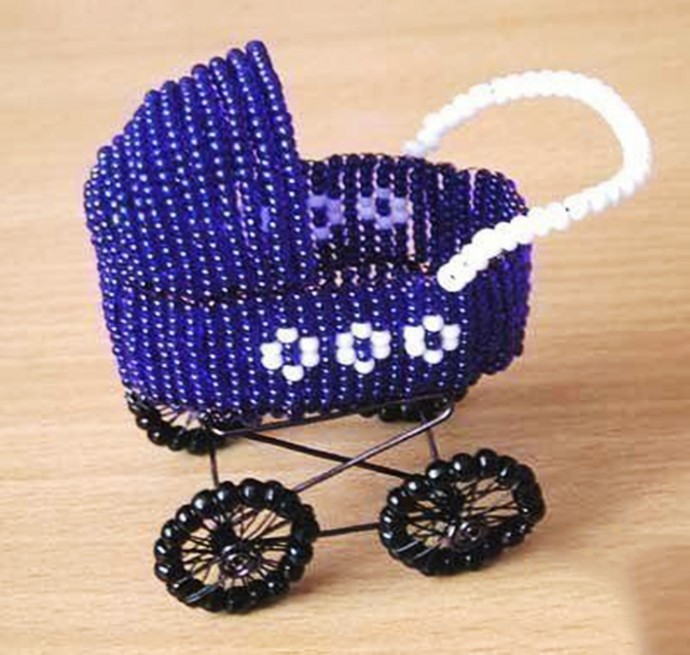 Декоративная коляска из бисера это очень интересное и оригинальное украшение интерьера.