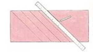 Начертите диагональные полосы на куске ткани шириной по 10 см. По одной на каждый цветок из ткани. Длина полоски ткани для цветка должна быть сантиметров 70, для бутона поменьше.