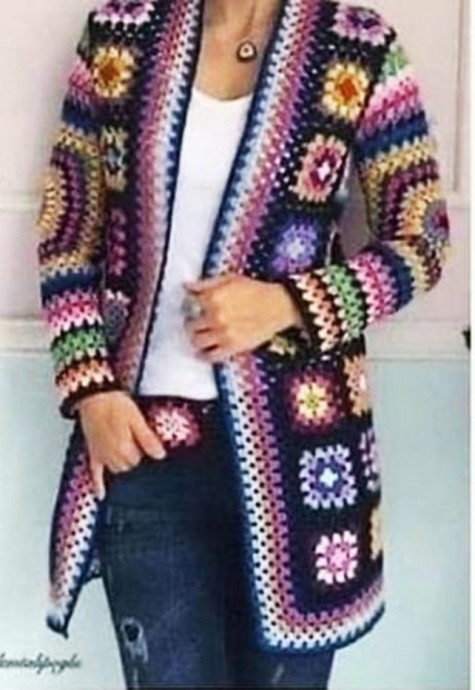 Кардиган из "бабушкиных" квадратов смотрится совсем не по-бабушкиному, а более, чем мило.