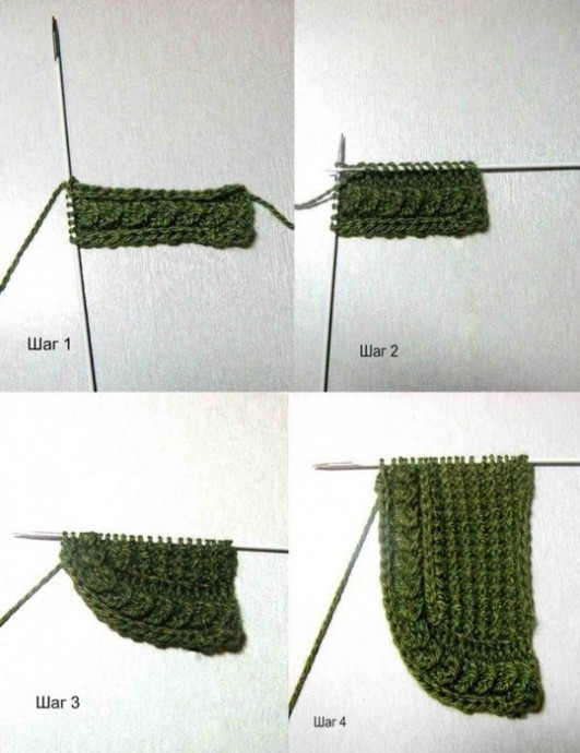 1-й способ: Набрать четное число петель, кратное четырем, плюс 3 п., плюс 2 кром. п. 1-й ряд (лицевой): 1 п.кром.,* 3 изн.п., 3 лиц. п. вывязать из одной п. (вытянуть рабочую нить из-под п., не снимая ее со спицы, сделать 1 накид, затем провязать лиц.п. за заднюю стенку, снять со спицы), повторять от *, 3 п.изн. Последняя п. кром. 2-й ряд (изнаночный): Первая и последняя п. – кром. Остальное вязать по рисунку. 3-й ряд (лицевой): 1 п.кром, 1 п.изн., *1 п.изн., 2 п. вместе лиц. за переднюю стенку, 1 п. лиц., 2 п. вместе лиц. за заднюю стенку, повторять от *, 2 п.изн. Последняя п. кром. 4-й ряд (изнаночный): вязать по рисунку. Далее повторять, начиная с 1-го ряда.