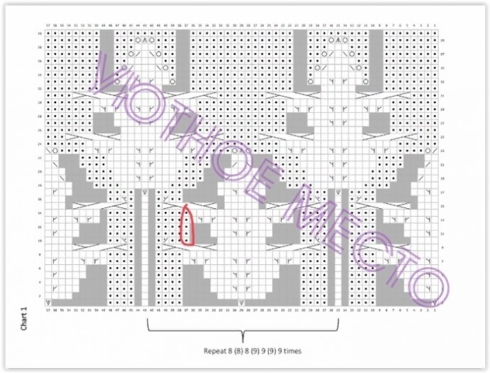 После завершения узора по схеме выполнить несколько рядов с прибавлениями по линиям реглана и отделить рукава.