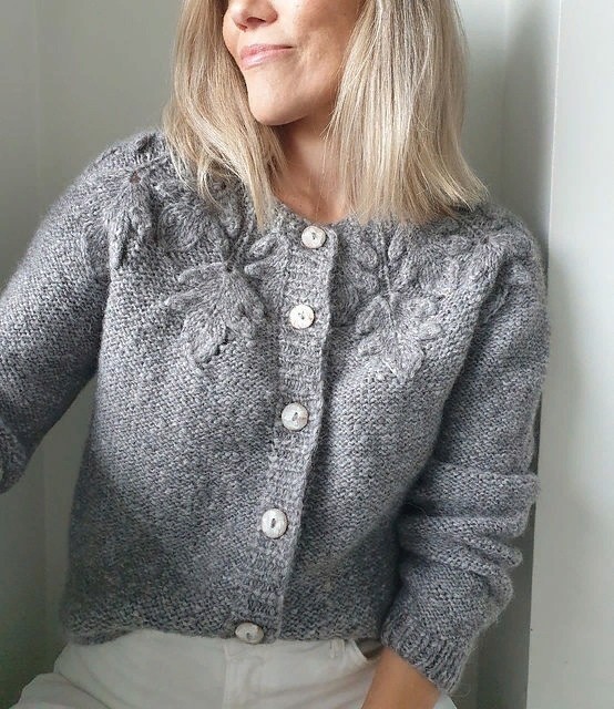 Дополнительно: 6 (6) 7 (7) 7 (8) 8 пуговиц, спица для кос, маркеры петель, держатели петель, игла для трикотажа.