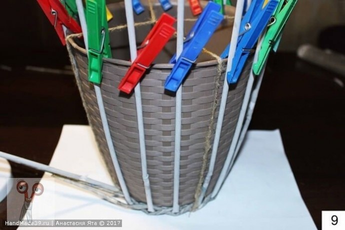 Вам помогут прищепки закреплять отдельные элементы во время плетения.
