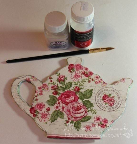 Чтобы чайник выглядел ярким и нарядным, салфетки надо наклеивать на белый фон.