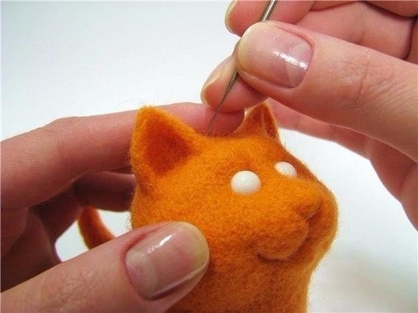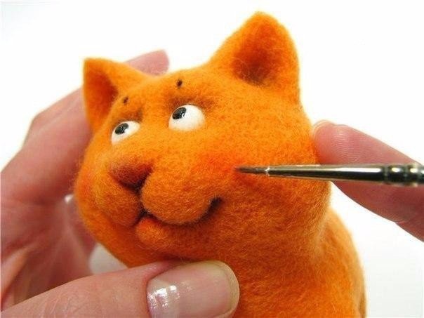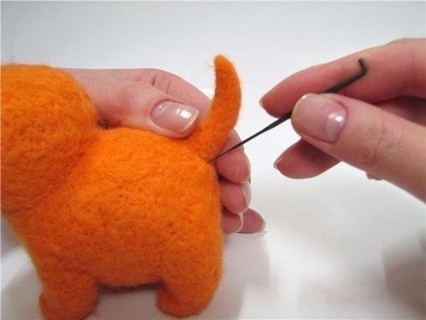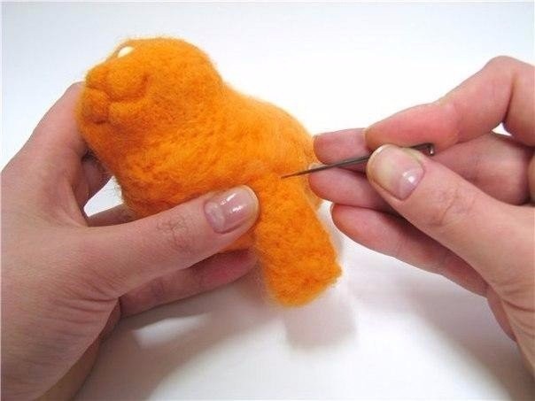Котёнок МандаринчикНам понадобится непряденая шерсть оранжевого цвета. Иголки для валяния: грубая №36, для основных работ; тонкая №38 star, для обработки поверхности; иголка с обра...