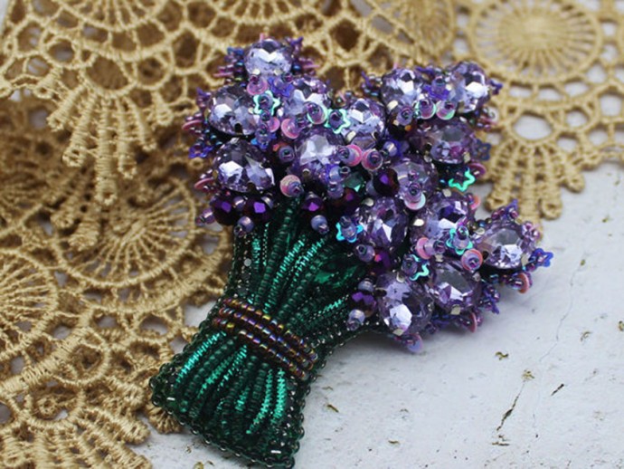 Букет лаванды из пайеток и бисера