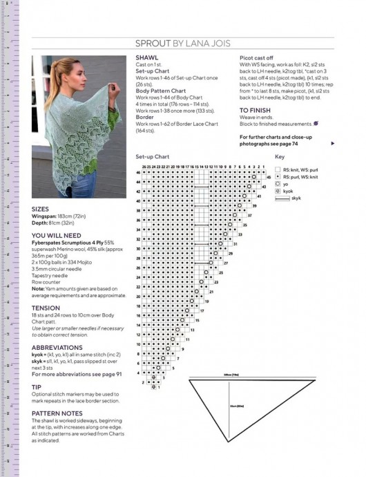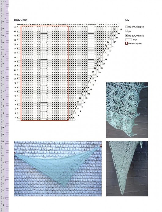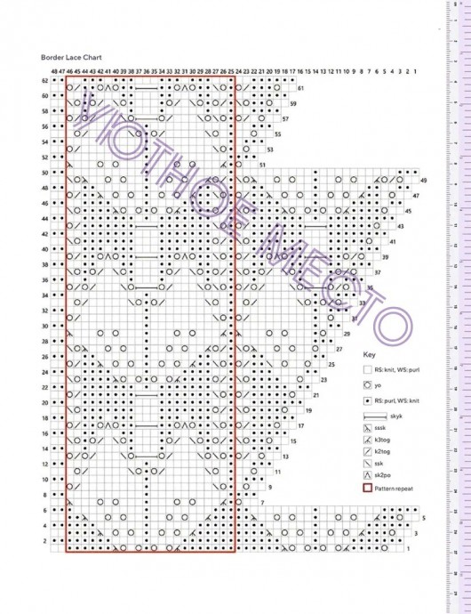 Вязать ряды 1-62 схемы ажурного бордюра шали (164п)