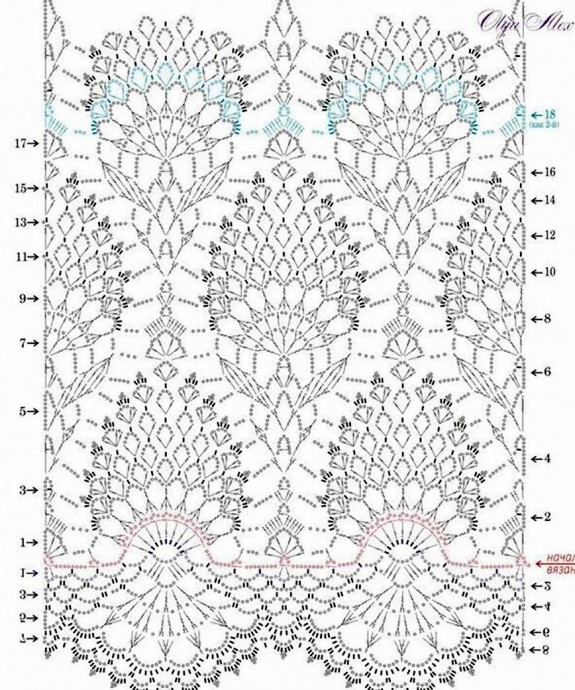 Узор крючком "Ананасы" с красивой обвязкой низа