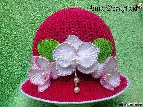 Красивые орхидеи тунисским вязанием