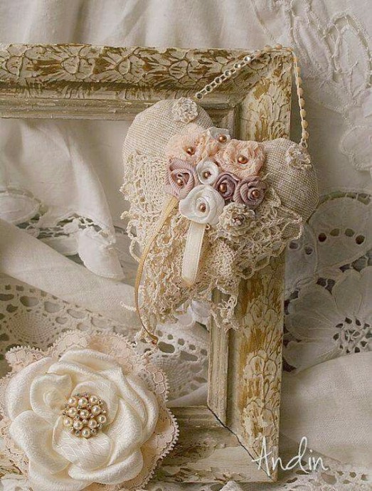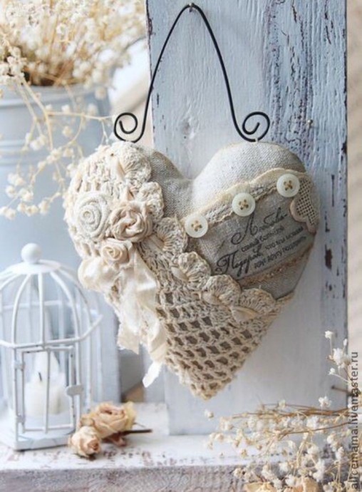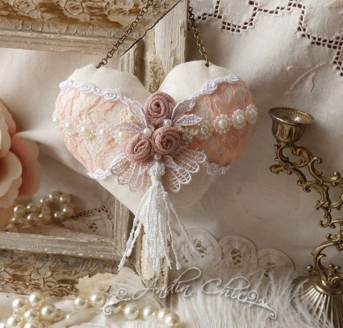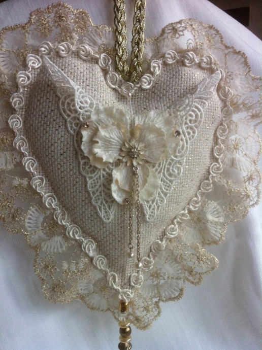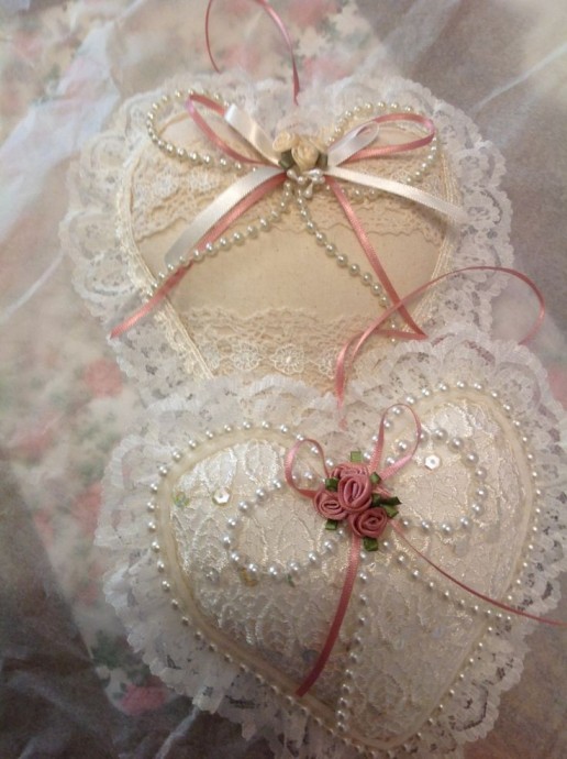 Сердечные подушечки можно украшать чем угодно: кружевами, цветами, бусинами и остальными предметами, которые есть под руками.
