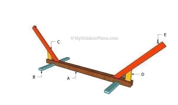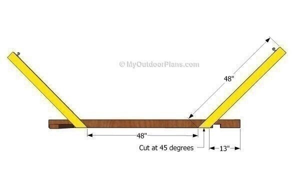 Стойка для гамакаНе забудьте пропитать древесину стойки влагостойким защитным составом.