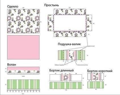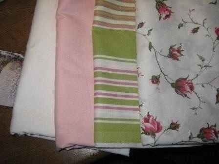 - 4 отреза ткани: розовый (2х1,5 м), белый (2х1,5 м), полосатый(1,5х1,5 м),в розочку (2,5х1,5 м)