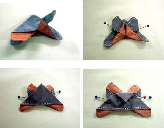 Бабочка из ткани в технике оригамиТакой бабочкой можно украсить даже шпильки.