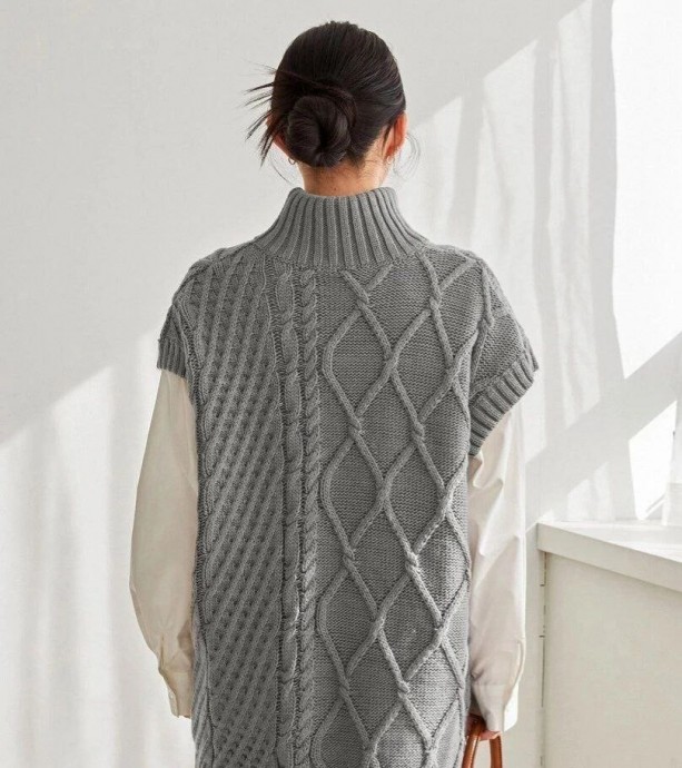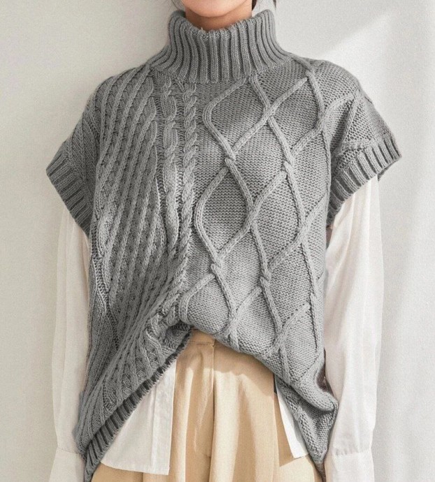 Эффектный жилет с двумя узорами вяжется на основе прямоугольника.