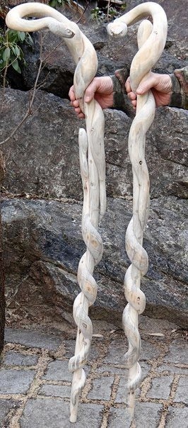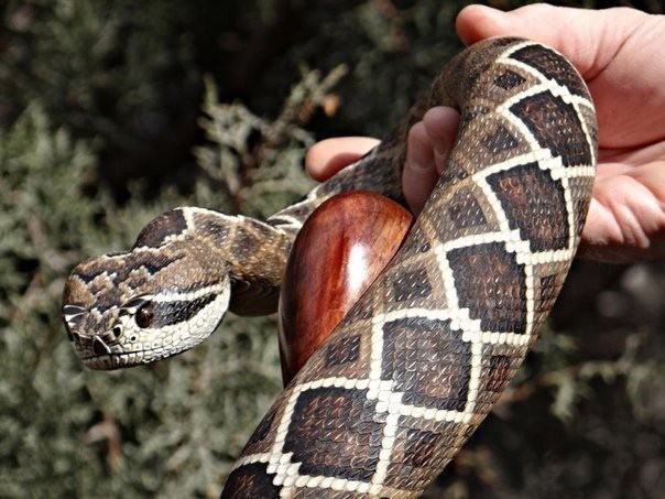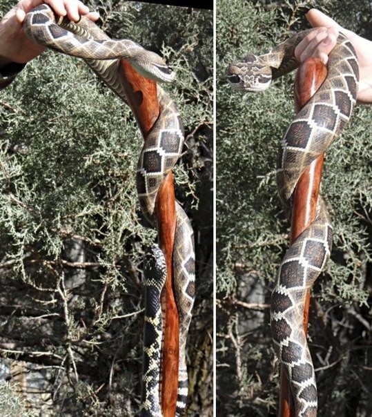Резчик по дереву Майк Стиннетт делает трости в виде змей, удивительно похожие на настоящих.