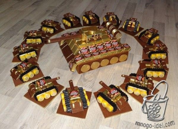 Этот танк хорош тем, что все конфеты при его изготовлении остаются в обёртках.