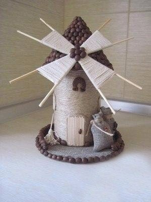 Мельница с декором кофейными зёрнами и шпагатом: мастер - класс