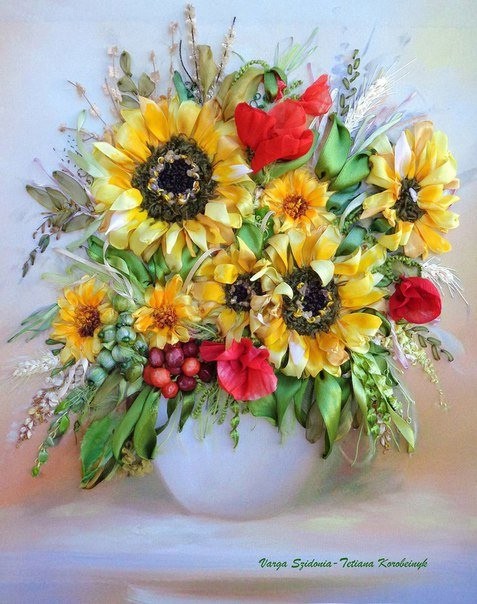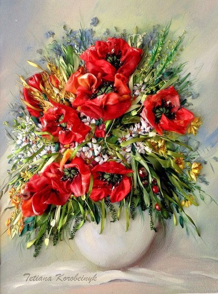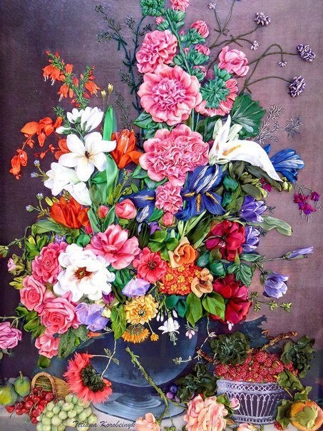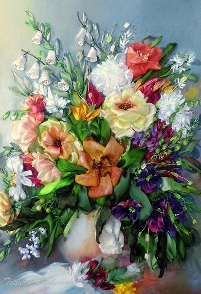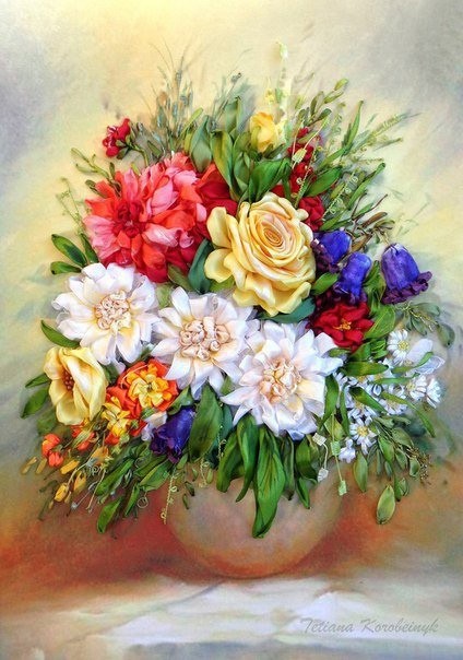 Вышивка лентами прекрасных букетов