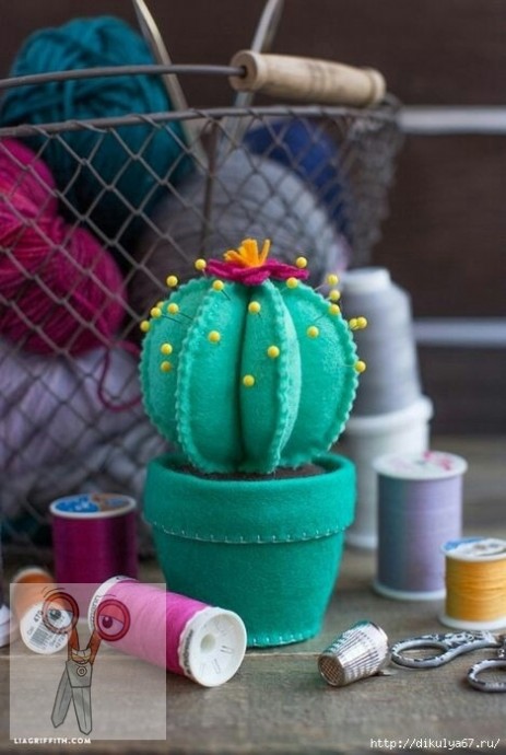 Игольница-кактус не будет поглощать электромагнитное излучение компьютера, как живой цветок.