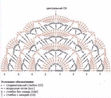 Схема вязания представлена ниже. Заканчивала 9-ю ст/н, на пятом столбике пико из пяти возд. петель.