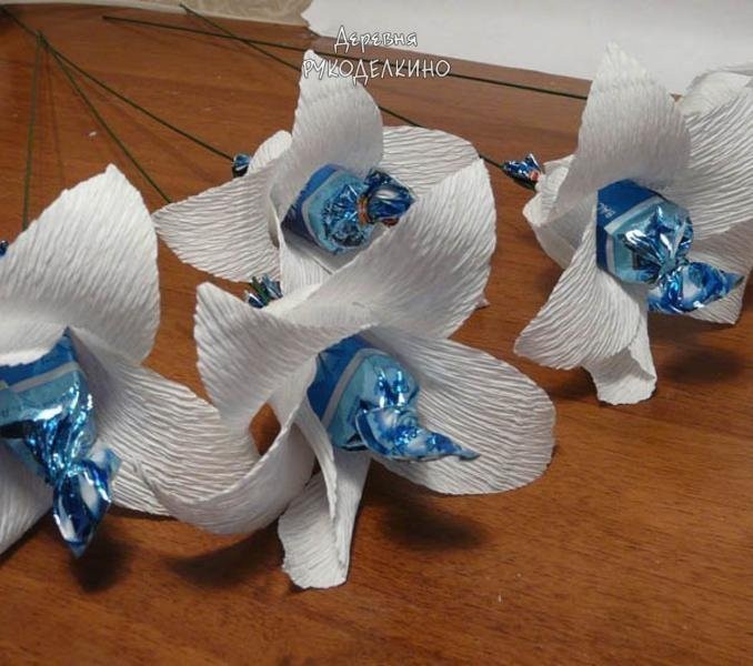 Лилии из конфет и бумаги