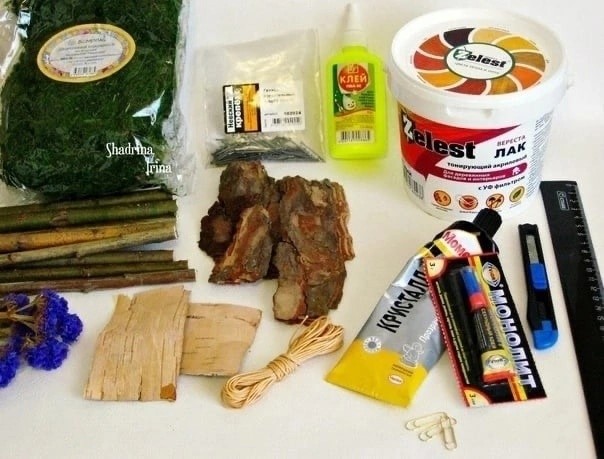 Миниатюрный интерьерный колодецМатериалы: заготовка сосна, спиртовые морилки, акриловый водный лак, наждачная бумага, стабилизированный мох, битум, жидкая патина, запекаемая пласти...