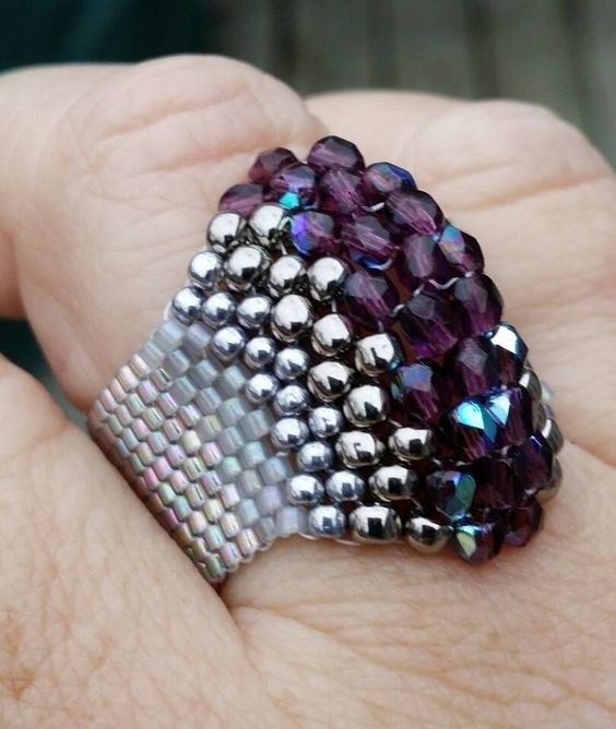 Уникальное кольцо из бисера не подойдет любителям бриллиантов, но согреет сердце и душу истинной рукодельнице.