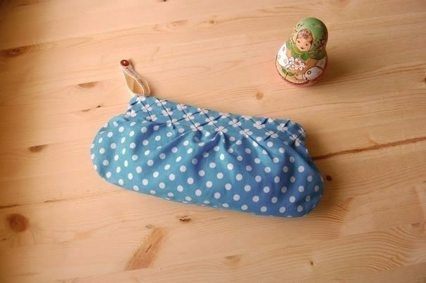 Обыгрываем ткань в горошек: шьем косметичку с буфами