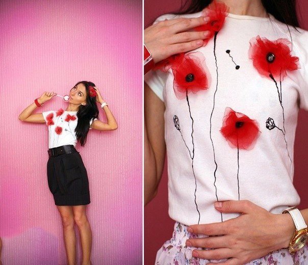 Делайте маки из органзы или другой полупрозрачной стромкой ткани.