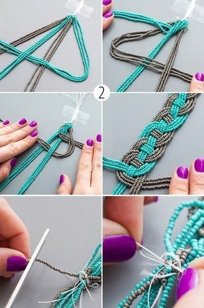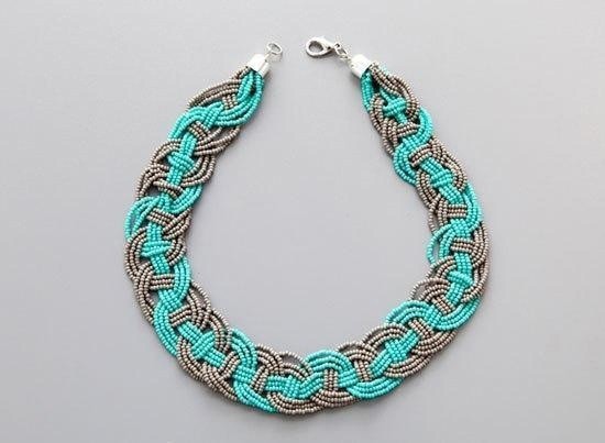 Плетеное колье из бисера получается достаточно широким - и поэтому требует блузок и платье с открытым горлом.
