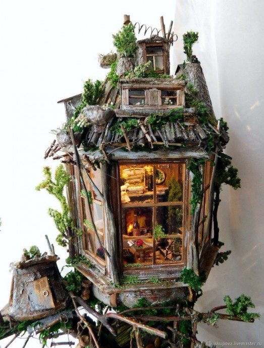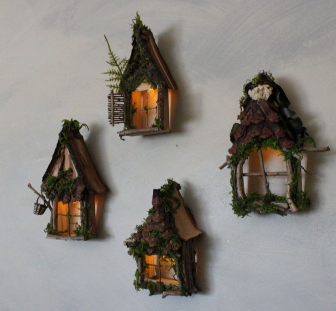 Используйте свечи на батарейках или спрятанные внутри домиков налобные фонарики, чтобы осветить их.