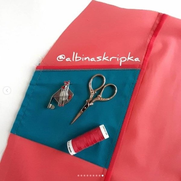 Сегодня покажу как можно в этом случае сделать прорезной кармашек с листочкой (по сути это ещё один вариант кармана в юбке с рельефами). Такой кармашек можно добавить в уже сшитое изделие, надо лишь подпороть боковой и рельефный швы.