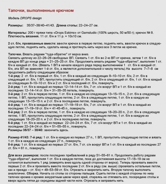 Тапочки, выполненные крючком