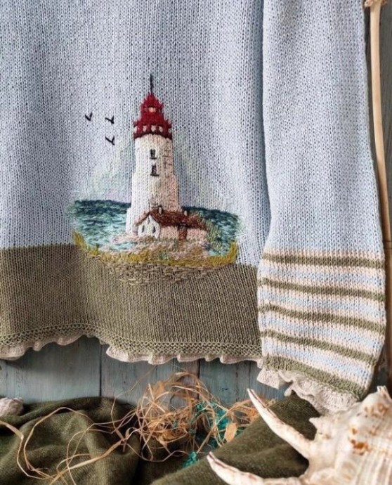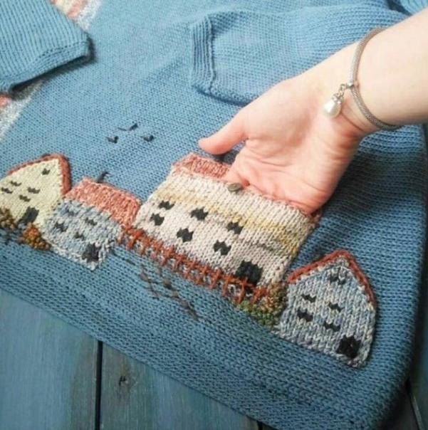 Домики на трикотаже могут быть даже завуалированными кармашками.