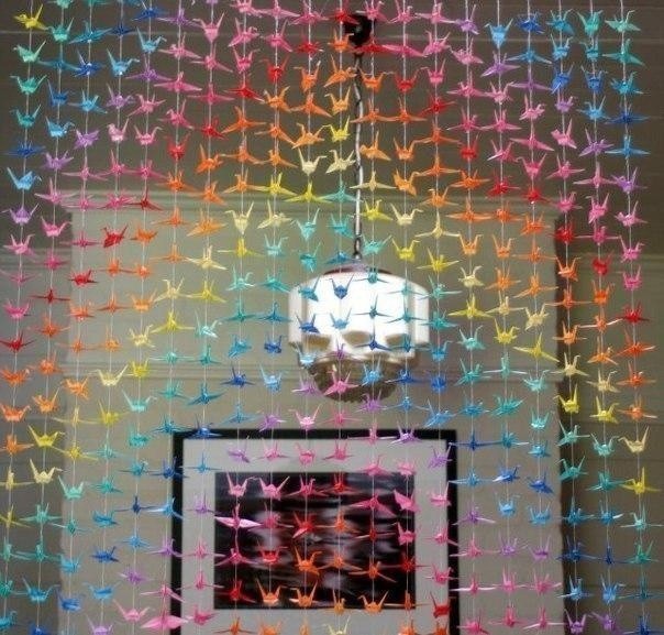 Журавлики счастья, собранные в большом количестве в этой занавеске, способны привлечь счастье в дом.