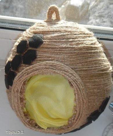 Улей из джутового шпагатаЭти пчёлки точно причинят вам беспокойств своими укусами.