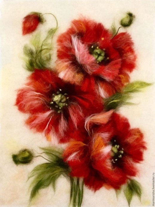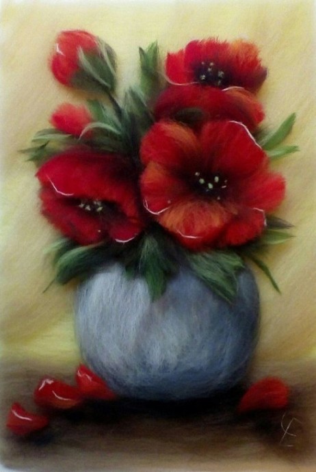 Картинами в технике «акварельная живопись шерстью» можно украсить любую комнату в квартире – кухню, гостиную, спальню и даже детскую. Главное, чтобы картина (и рама, и рисунок) гармонично вписалась в стиль интерьера и по цвету, и по тематике. Для кухни подойдет картина-натюрморт, с аппетитными фруктами и красивыми вазами. Для гостиной можно нарисовать чей-то портрет или живописный пейзаж в таких тонах, цветочные букеты, которые подойдут под цветовое решение комнаты. В детской комнате тоже найдется место для картины с изображением сказочных персонажей или забавных зверюшек.