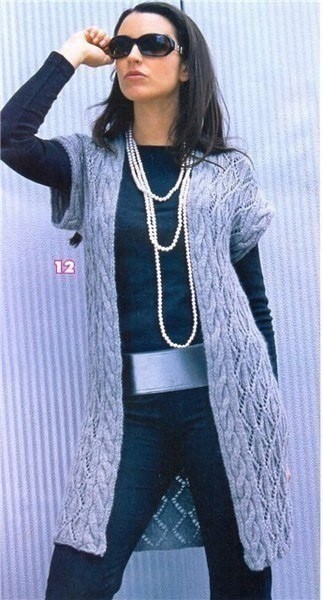 Удлинённый жилет с красивым узором это оптимальное решение для поздней весны с ее непостоянством погоды.