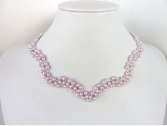 Зигзагообразное колье можно сделать как из искусственного жемчуга, так и из натурального.