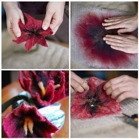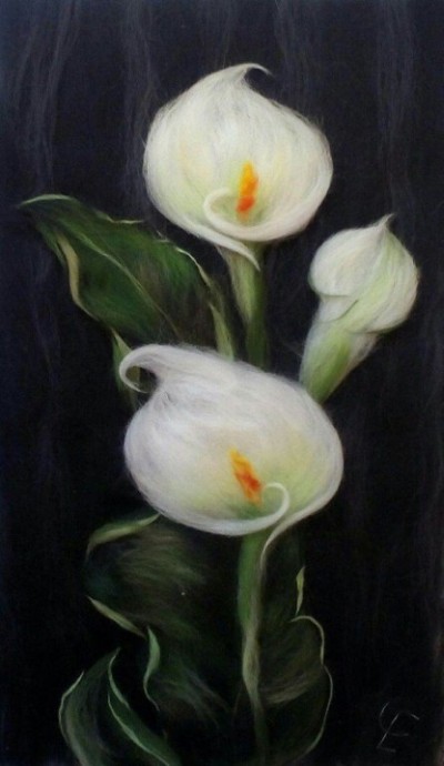Цветочные картины из шерсти