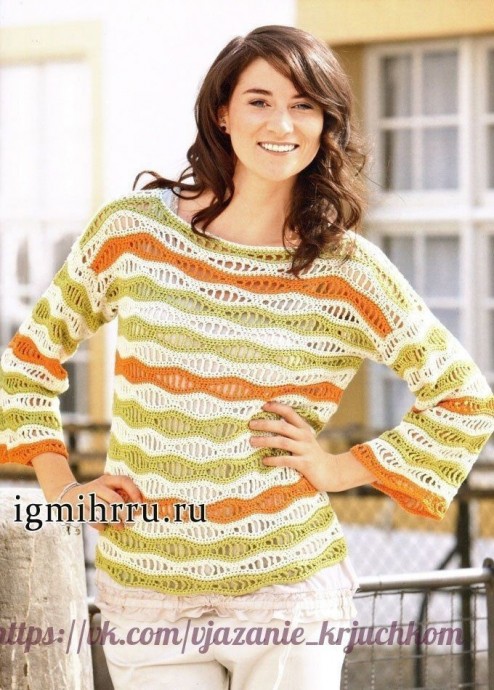 Этот джемпер намного выигрышнее смотрится не однотонным, а именно разноцветным.