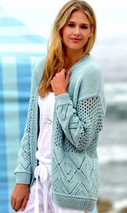 Плотность вязания: лиц. глади на спицах № 4: 19 п. и 27 р. = 10 х 10 см.