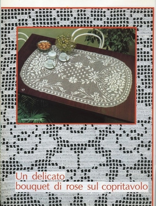 Овальная салфетка выполнена в технике филейного вязания крючком.