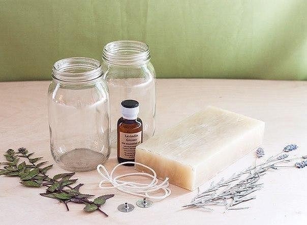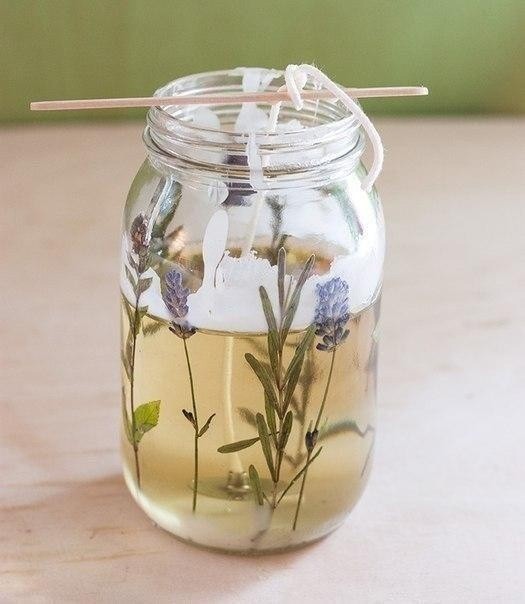 Красивые ароматные свечи можно сделать, настругав обычные и добавив цветы лаванды.